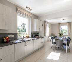Erg mooi vakantiehuis, top afwerking en een zeer grote en goed uitgeruste keuken. Prachtig terras en grasveld om op te spelen of te luieren. De directe omgeving is niet druk en fantastisch om te fietsen.