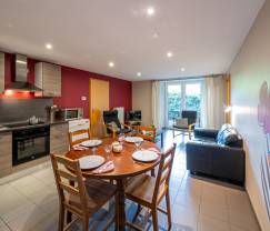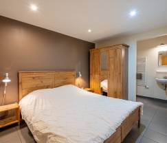 Die Unterkunft besteht aus 2 Schlafzimmern, die gemütlich mit schönen Holzbetten eingerichtet sind und jeweils über ein eigenes Badezimmer mit Dusche und Waschbecken verfügen. Im Erdgeschoss befindet sich das Wohnzimmer mit Sitzecke, Kabel-TV und DVD-Player. Die kompakte Küche ist mit einem Elektroherd mit 4 Kochplatten, einem Backofen, einer Mikrowelle, einem Kühlschrank mit Gefrierfach und sogar einem Geschirrspüler ausgestattet. Von hier aus gelangen Sie in den gemeinsam genutzten Garten mit Terrasse, Grill und Gartenmöbeln.