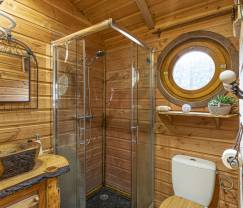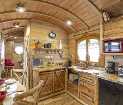 Gönnen Sie sich eine Auszeit zu zweit in diesem hübschen Wohnwagen aus Holz mit 1 Schlafzimmer, 1 Badezimmer und einem skandinavischen Badefass.
