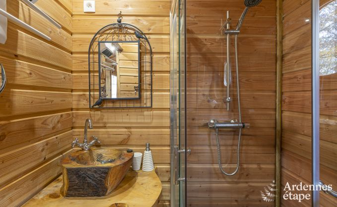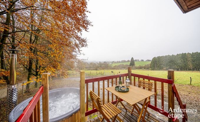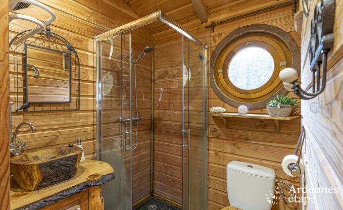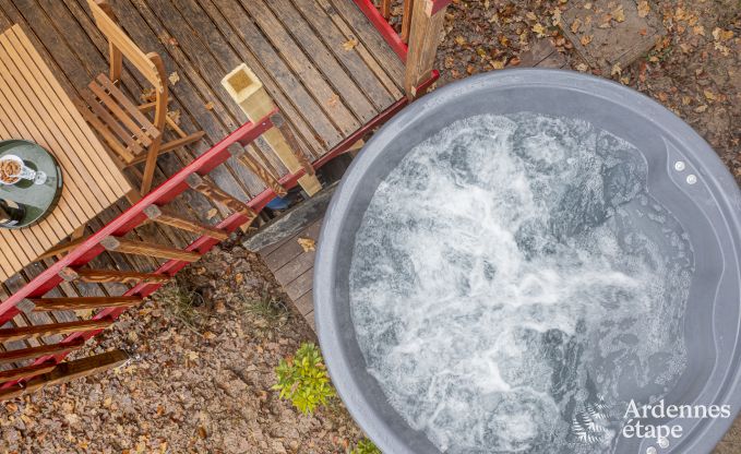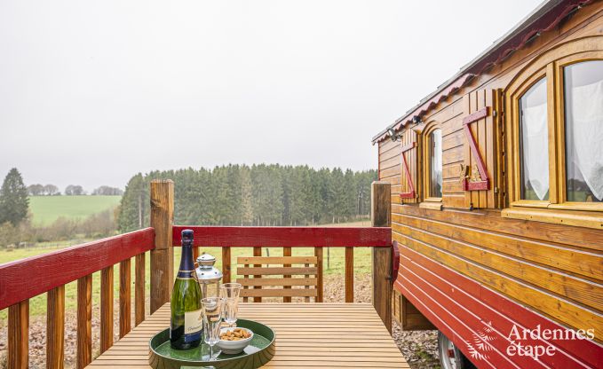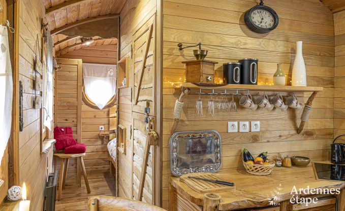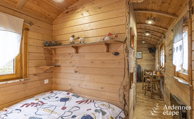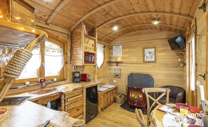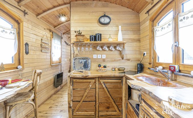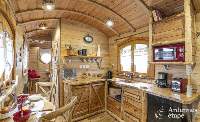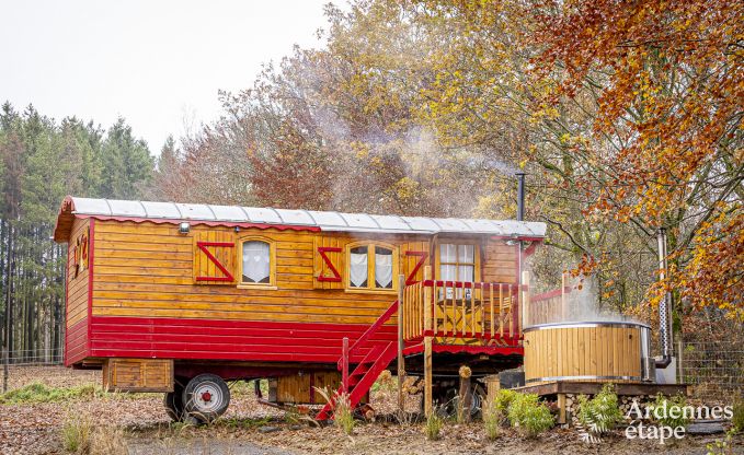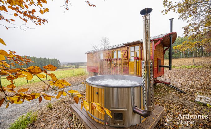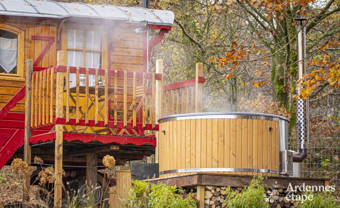 Gönnen Sie sich eine Auszeit zu zweit in diesem hübschen Wohnwagen aus Holz mit 1 Schlafzimmer , 1 Badezimmer und einem skandinavischen Badefass . Möchten Sie Ihre bessere Hälfte mit einem originellen Aufenthalt überraschen? Diese Unterkunft ist der ideale Ort für eine Auszeit nur zu zweit... Dieser gemütliche Wohnwagen mit roten Fensterläden, der von einem Schreiner gebaut...