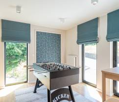 Als gepensioneerd koppel verbleven wij daar met onze dochter, schoonzoon en kleindochter. Er was voldoende ruimte in de mooie woning en in de tuin. De gezelschapsspelletjes die wij bij hadden, werden niet gebruikt omdat er voldoende ontspanningsmogelijkheden waren in de woning : zwemmen in het mooie verwarmde zwembad, darten, kickeren... Originele indeling van de woning waarbij je verschillende halve verdiepingen hebt. Zeer smaakvol ingericht. Een woning om terug te komen !