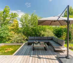 Diese geräumige 4-Sterne-Villa wurde mit viel Geschmack und Sorgfalt rund um das Thema der Fotografie renoviert: Jeder Raum wurde mit einem besonderen fotografischen Motiv versehen, was dem Interieur einen besonderen Charakter verleiht. Wir lieben es! Machen Sie es sich in der gemütlichen Sitzecke am Kamin bequem, und genießen Sie ein gutes Buch bei einem Glas Wein, oder verbringen Sie verträumte Momente am kleinen Fischteich auf der reizvollen Terrasse aus Holz. Und die Kinder? Sie können sich im Pool und in den verschiedenen Spielbereichen nach Herzenslust austoben. Das Geheimnis, um sofort in den Urlaubsmodus zu schalten? Ein leckeres Barbecue! Im Herbst und im Winter eben eingemummelt in einen dicken Pullover!
