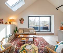 Die Unterkunft verfügt über vier Schlafzimmer und zwei Badezimmer. Die Unterkunft ist mit geschmackvollen Vintage-Möbeln und Akzenten eingerichtet, die eine authentische Atmosphäre schaffen. Die private Terrasse ist perfekt, um die frische Luft und die wunderschöne Umgebung zu genießen. Für Fahrradliebhaber gibt es einen sicheren Fahrradabstellplatz und ein Fahrradreinigungsset.