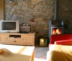 Dieses große Ferienhaus besticht mit seiner authentischen Bauweise. Die Bruchsteinfassaden verleihen ihm den Charme der alten Zeit. Das Ferienhaus grenzt an andere Unterkünfte an, hat aber einen eigenen Eingang im Erdgeschoss. Die zweigeschossige Unterkunft bietet eine Wohnfläche von insgesamt 115 m². Das Erdgeschoss mit den Gemeinschaftsbereichen strahlt ein einladendes Ambiente aus. Die Bruchsteinmauer in dem hellen, rustikal eingerichteten Wohnzimmer mit Holzofen ist ein angenehmer Blickfänger. Die Designmöbel verleihen diesem Raum eine raffinierte Note. Esszimmer und Einbauküche sind in demselben Stil eingerichtet und befinden sich ebenfalls im Erdgeschoss. Im Obergeschoss befinden sich zwei Dachzimmer, die über eine Wendeltreppe zu erreichen sind. Hier befindet sich auch das Badezimmer mit Dusche und Badewanne. In diesem Schlafbereich, der vom Gemeinschaftsbereich gut getrennt ist, ist ihre Nachtruhe gesichert. Zudem gehört zu diesem Ferienhaus auf dem Land ein 6000 m² großer Garten mit Kinderspielgeräten und Blick auf die Landschaft ringsum.