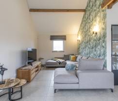 Het vakantiehuis had een ruime verzorgde open leefruimte waardoor je aangenaam kon samen zijn met je vakantiegenoten. Een flesje wijn stond koud alsook de jacuzzi was voorverwarmd. De keuken is zeer goed uitgerust van al de nodige voorzieningen. Het huisje ligt op een wandelroute en is nabij de kerk waar tal van andere fiets en wandelroutes vertrekken. Het dorpje is gezellig met enkele café's maar verder weinig inkoopmogelijkheden.