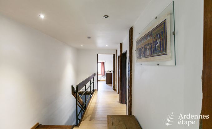 Dieses zu einer Seite an ein anderes Haus angrenzende, ehemalige Bauernhaus verströmt den Reiz des Ursprünglichen. Sein schönes Fachwerk, die freiliegenden Holzbalken, der regionale Naturstein und die alten Parkettfußböden verleihen diesem Haus einen historischen Charakter, wie er für die Ardennen typisch ist. Die bequeme Einrichtung, die den Charakter des Hauses wunderbar ergänzt, trägt zu dieser gedämpften Atmosphäre bei. Die Innenräume sind überaus gemütlich und laden Sie dazu ein, sich wie zu Hause zu fühlen... es sei denn, Sie gehen lieber an die frische Luft? Da haben Sie natürlich Recht, denn auch die Außenbereiche sind überaus reizvoll: Naturlandschaften, so weit das Auge reicht, eine Terrasse für Ihren Apéritif, ein Teich gleich nebenan und Spielgeräte für das Vergnügen der Kinder… Was will man mehr?