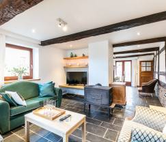 Ehemaliges Bauernhaus mit rustikalem Charme für Ihren Urlaub auf dem Lande. Mit 3 Schlafzimmern, Terrasse und privatem Garten + Gemeinschaftsgarten und Teich am Haus. Dieses zu einer Seite an ein anderes Haus angrenzende, ehemalige Bauernhaus verströmt den Reiz des Ursprünglichen. Sein schönes Fachwerk , die freiliegenden Holzbalken , der regionale Naturstein und die alten Parkettfußböden...