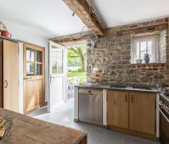 Vom Interieur dieses charaktervollen Landhauses mit freiliegenden Holzbalken, Natursteinmauern und rustikalem Mobiliar werden Sie sofort begeistert sein. Auch der Außenbereich ist ein echtes Schmuckstück. Hier verfügen Sie über eine eigene Terrasse und können zudem den gemeinschaftlichen Garten mit Kinderspielgeräten nutzen. Die Zimmer des Hauses sind sehr geräumig und verströmen pure Eleganz. Der Wohnbereich ist gemütlich und einladend. Genießen Sie ein köstliches Mahl im Esszimmer oder einen leckeren Snack im Wohnzimmer, während Sie sich an der erholsamen und angenehmen Umgebung erfreuen. Die Küche ist ebenfalls hervorragend ausgestattet und versprüht den gleichen Charme wie die übrigen Räume. Drei Doppelschlafzimmer, ein Badezimmer und ein separates WC stehen Ihnen zur Verfügung. Eine Babyausstattung ist vorhanden und Sie haben die Möglichkeit, den privaten Parkplatz zu nutzen. Es wurde an alles gedacht, damit Sie hier eine wohlverdiente Auszeit genießen können.