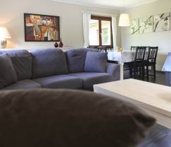 Mit viel Komfort bietet dieses Haus funktionsorientierte und gemütliche Innenbereiche, die mit viel Liebe zum Detail eingerichtet sind. Hier finden Sie 3 Schlafzimmer, von denen eines mit 2 Etagenbetten ausgestattet und somit perfekt für Kinder ist. Die Unterkunft ist also ideal für einen Familienurlaub mit 7 Personen, wo sich alle Gäste schnell wie zu Hause führen werden. Die Außenbereiche umfassen eine große Spielwiese, von der die Jüngsten begeistert sein werden, und einen Grill für gesellige Sommerabende mit der ganzen Familie in dieser schönen Umgebung. Im Haus besteht der Wohnbereich aus einem überaus gemütlichen Wohnzimmer mit Sofas am Kaminofen, der zu gemütlichen Abenden am Feuer einlädt. Hier finden Sie auch ein einladendes und reizvoll dekoriertes Esszimmer, in dem Sie die leckeren Mahlzeiten, die Sie in der voll ausgestatteten Küche mit Meisterhand zubereitet haben, gemeinsam genießen können.