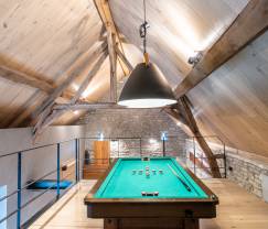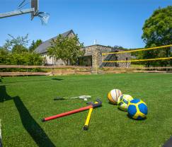 Für Spiel- und Entspannungsliebhaber gibt es sowohl drinnen als auch draußen genug zu tun! Ein Spielzimmer mit einem Billiardtisch, einem Tischfußballspiel und ein paar altmodischen Holzspielen. Draußen finden Sie einen privaten Garten, eine private Terrasse und einen Grill für gemütliche Abende im Freien. Kinder können sich auf den Außenspielgeräten und dem Multisportgelände (dieses ist gemeinschaftlich mit einem anderen Ferienhaus) austoben, während Erwachsene eine Partie Pétanque genießen.