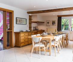 Dieses Ferienhaus ist für größere Gruppen geeignet. Es gibt sechs Zimmer für 14 Personen und drei Badezimmer. Auch die Kleinsten sind willkommen. In diesem Ferienhaus gibt es zwei Babybetten, Hochstühle, eine Wickelmatte und eine Babybadewanne. Was die Badezimmer betrifft, hat man auch hier Lust, die Morgentoilette ein wenig in die Länge zu ziehen und die hervorragende Ausstattung und die edlen, schön verarbeiteten Materialien zu genießen, die ein Gefühl von Komfort vermitteln.