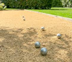 Draußen können Sie einen privaten Garten, eine Terrasse, einen Grill und ein Boule-Feld genießen. Ideal für gesellige Abende mit Familie und Freunden.