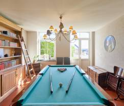 Dieses charaktervolle Gebäude wurde kürzlich unter Wahrung des ursprünglichen Charakters renoviert, was sich in der schönen Innenraumgestaltung mit Steinmauern und freiliegenden Holzbalken widerspiegelt. Die geräumigen und komfortablen Zimmer bieten Platz für die ganze Familie. Hier wird sich jeder Gast schon bald wie zu Hause fühlen. Haben Sie Lust auf ein wenig Ruhe und Entspannung? Dann gönnen Sie sich doch einen Saunagang im Wellnessbereich oder ziehen Sie sich mit einem guten Buch ins Lesezimmer zurück. Die Kinder können sich unterdessen draußen auf der 800 m² großen Spielwiese vergnügen. Auf der ideal gelegenen Terrasse werden Sie jeden Sonnenstrahl genießen und bestimmt wird bei schönem Wetter auch der Grill zum Einsatz kommen. Der Wohnbereich ist mit seiner gemütlichen Atmosphäre ein echter Wohlfühlort, der zu schönen gemeinsamen Mahlzeiten und im Winter zu kuscheligen Abenden am Kamin einlädt. In der perfekt ausgestatteten Küche sind Meisterköche und Feinschmecker in ihrem Element. Zu guter Letzt verfügen Sie über 4 Schlafzimmer und 3 Badezimmer.