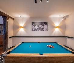 Für Entspannung und Spaß gibt es einen Spielraum mit unter anderem einem Billardtisch und Darts, ideal, um gemeinsam mit Freunden oder Familie schöne Momente zu erleben. Außerdem gibt es einen Entspannungsraum mit einer Sauna, in dem man sich nach einem Tag voller Aktivitäten herrlich entspannen kann. Das Haus verfügt außerdem über eine Bar und einen Holzgrill, um gesellige Abende zu veranstalten.