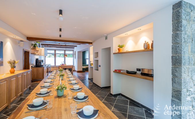 Dieses geräumige Ferienhaus in Rochefort ist perfekt für Gruppen bis zu 25 Personen, die gemeinsam eine unvergessliche Zeit in den Ardennen genießen möchten. Mit nicht weniger als 11 Schlafzimmern und 11 Badezimmern bietet dieses Haus ausreichend Privatsphäre und Komfort für alle. Die Einrichtung verbindet Gemütlichkeit mit Funktionalität, sodass man sich sofort wie zu Hause fühlt....