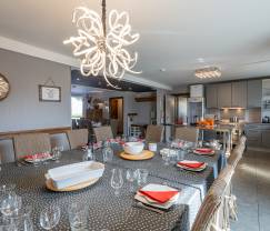 Dieses große Ferienhaus mit zwei gesonderten, teilweise jedoch miteinander verbundenen Gebäudeabschnitten eignet sich ideal für einen gemütlichen Urlaub in der Gruppe. Die Unterkunft bietet sich für insgesamt 36 Personen an, die hier allesamt entsprechenden Komfort und Privatsphäre genießen können. Das Feriendomizil verfügt über 14 Schlafzimmer und verschiedene gesonderte Badezimmer. Im Erdgeschoss sind die beiden Teile der Immobilie durch eine Tür miteinander verbunden, so dass die Möglichkeit gegeben ist, sich in einem der beiden großen Wohnzimmer zu treffen. Jedes der Wohnzimmer überzeugt durch verschiedene geschmackvoll eingerichtete Ess- und Wohnbereiche. Hier erwarten Sie außerdem zwei hübsch eingerichtete Küchen, in denen alle an der Vorbereitung der Mahlzeiten mithelfen können. Sobald die warmen Tage anbrechen, können Sie mit der ganzen Familie auf der großen Terrasse zusammenkommen, um gemeinsam zu grillen.