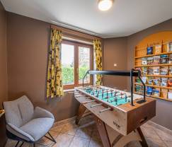 Das Haus ist mit einem gemütlichen Kamin ausgestattet, an dem Sie sich nach einem Tag voller Entdeckungen entspannen können. Für die Kinder gibt es ein umfangreiches Spielzimmer mit einem Tischfußballspiel, Dartboard und Gesellschaftsspielen. Dies sorgt dafür, dass sie sich keinen Moment langweilen, selbst an regnerischen Tagen. Während die Kinder spielen, können die Eltern einen Aperitif am Kamin oder auf der privaten Terrasse mit Grill genießen.