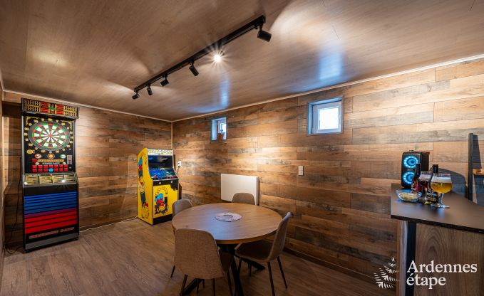 Das Haus ist mit einem gemütlichen Kamin ausgestattet, an dem Sie sich nach einem Tag voller Entdeckungen entspannen können. Für die Kinder gibt es ein umfangreiches Spielzimmer mit einem Tischfußballspiel, Dartboard und Gesellschaftsspielen. Dies sorgt dafür, dass sie sich keinen Moment langweilen, selbst an regnerischen Tagen. Während die Kinder spielen, können die Eltern einen Aperitif am Kamin oder auf der privaten Terrasse mit Grill genießen.