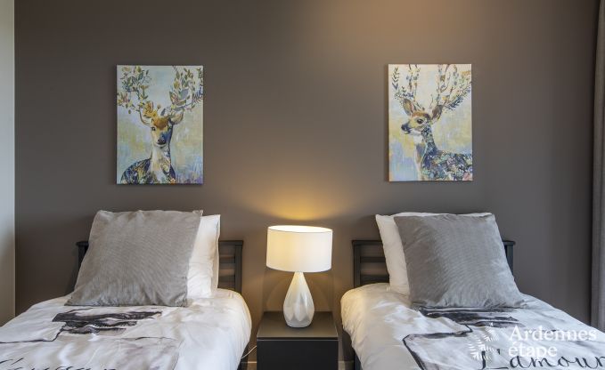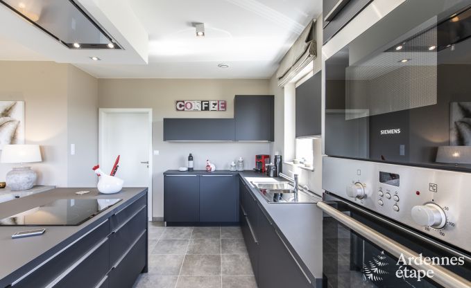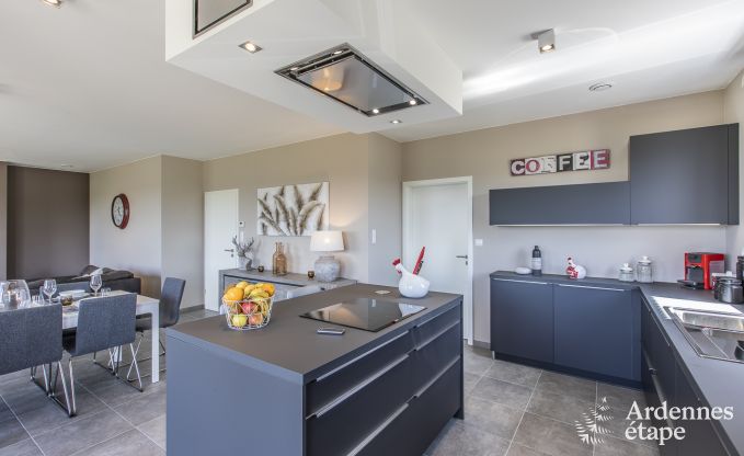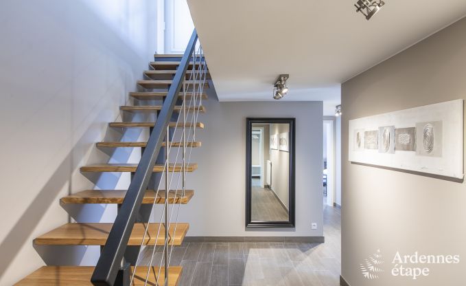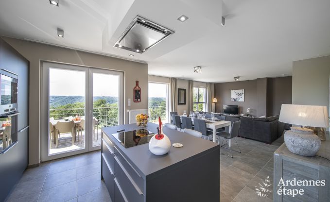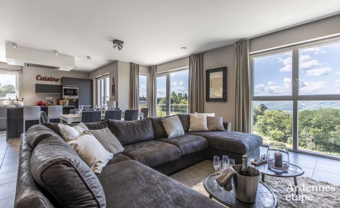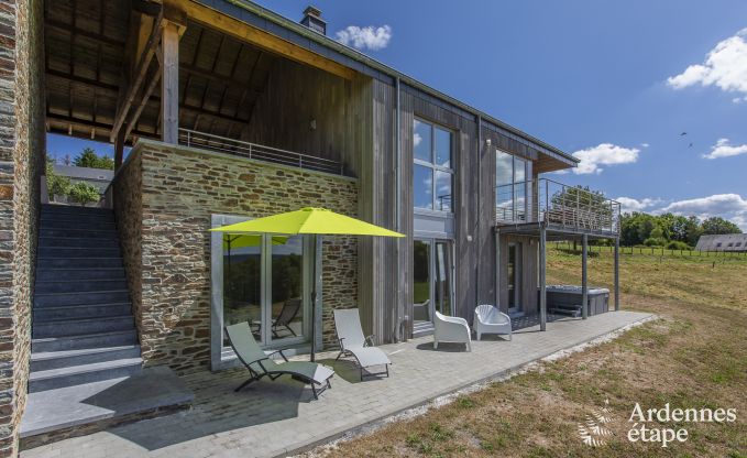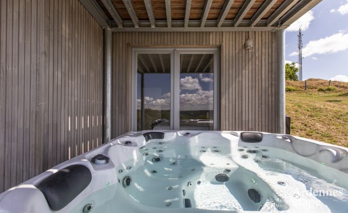 Wunderschönes, modernes Ferienhaus für einen naturnahen Urlaub in den Ardennen. Dieses 3,5-Sterne-Ferienhaus bietet 4 Zimmer, eine überdachte Terrasse mit Jacuzzi und eine atemberaubende Aussicht auf Wälder und das Semois-Tal.