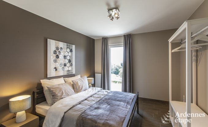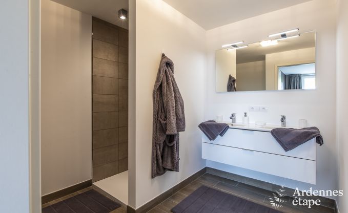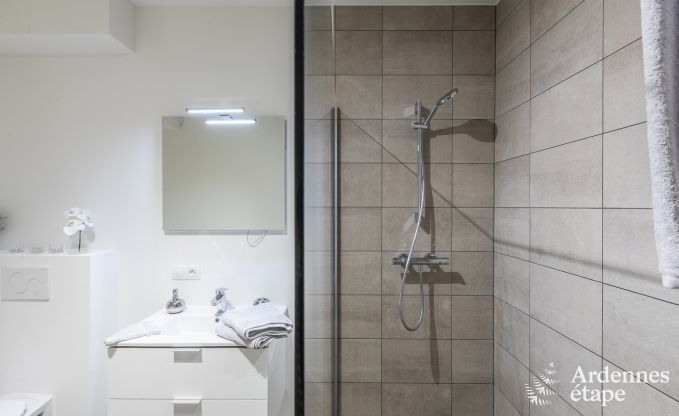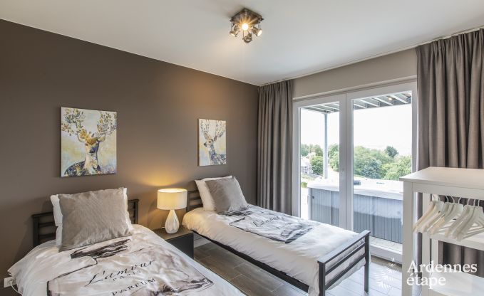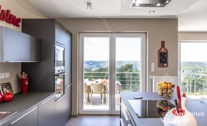 Wunderschönes, modernes Ferienhaus für einen naturnahen Urlaub in den Ardennen. Dieses 3,5-Sterne-Ferienhaus bietet 4 Zimmer, eine überdachte Terrasse mit Jacuzzi und eine atemberaubende Aussicht auf Wälder und das Semois-Tal. Dieses Ferienhaus zur Vermietung erwartet Sie in ruhiger Lage am Ausgang eines typischen Dorfs im Tal der Semois für einen authentischen...