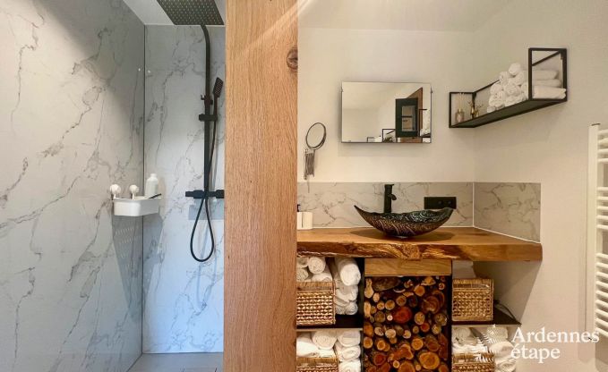 Willkommen in diesem wunderschönen Chalet für 4 Personen, gelegen im idyllischen Saint-Hubert . Dieses Ferienhaus ist ideal für Paare, mit oder ohne Kinder, die auf der Suche nach einem entspannten Aufenthalt in den Ardennen sind. Das Chalet ist mit Liebe zum Detail gestaltet und von den Formen und Elementen der Natur inspiriert, wodurch es sich perfekt in die umliegende Umgebung einfügt....