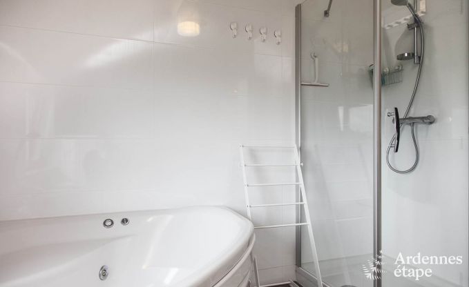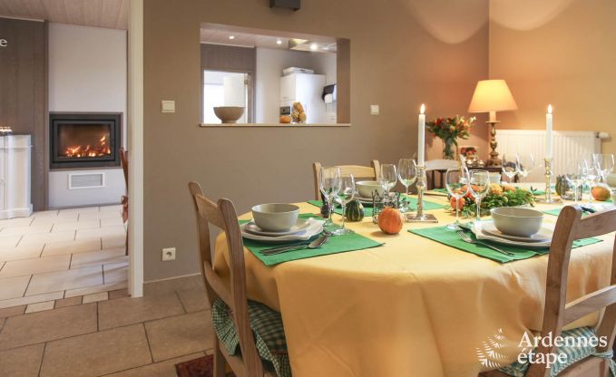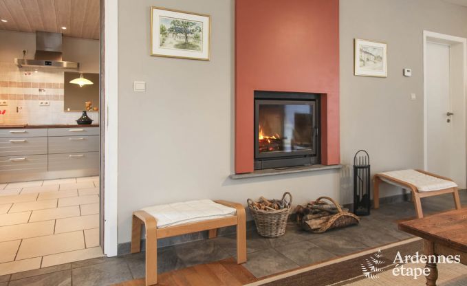 Die Mischung aus Stein und Holz verleiht diesem schönen Ferienhaus für 7 Personen einen rustikalen Charakter. Das Haus ist mit 3 angenehmen Schlafzimmern, 2 Bädern (davon ein Whirlpool), und einem hellen Wohnzimmer ausgestattet, das in die Küche übergeht. Die moderne Küche ist voll ausgestattet und verfügt über zahlreiche Elektrogeräte: Toaster, Wasserkocher, Küchensets, Orangenpresse, etc. Nach einem langen Spaziergang in der Region können Sie die Wärme des Holzfeuers genießen, während die Kinder sich auf dem zu einer Spieleecke umfunktionierte Treppenabsatz amüsieren können. In der schönen Jahreszeit bietet Ihnen diese Ferienvilla einen großen Vorteil: Das beheizte Außenschwimmbecken und der große Garten (mit unverbautem Ausblick auf die Umgebung) bieten Ihnen die Möglichkeit, entspannende Stunden zu verbringen. Dieses Ferienhaus verfügt über alles, was Sie und Ihre Kinder brauchen, um einen angenehmen Aufenthalt mit viel Zeit an der frischen Luft zu verbringen: ein Grill, Gartenmobiliar und verschiedene Spielmöglichkeiten für Kinder. Dieses Ferienhaus in einem kleinen Dorf bei Saint-Hubert, der europäischen Hauptstadt der Jagd, verspricht Ihnen vollkommenes Eintauchen ins Herz der Ardennen.