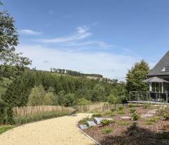 Ein zu entspannten Momenten einladender Garten mit herrlichem Ausblick auf den Wald von Saint-Hubert.
