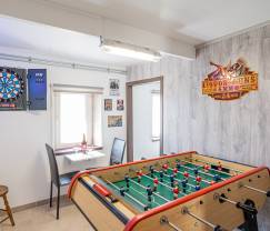 Das Wohnzimmer ist ein gemütlicher Ort, um nach einem abenteuerlichen Tag zu entspannen. Sie können eine Partie Darts spielen oder Ihre Fähigkeiten am Tischfußball testen. Und wenn Sie Lust auf einen ruhigen Abend haben, sind Gesellschaftsspiele verfügbar.