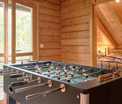 Für Familien mit kleinen Kindern sind ein Babybett und ein Kinderstuhl vorhanden, sodass auch die Kleinsten komfortabel wohnen können. Dieses Chalet verbindet Komfort, Spaß und Funktionalität in einer wunderschönen natürlichen Umgebung.
