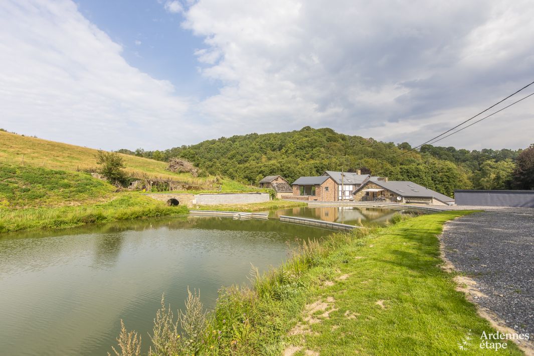 Reizvolles Ferienhaus in Somme-Leuze. Mit 3 Schlafzimmern, 2 Badezimmern, privatem Angelteich, Garten und Terrasse. Erstklassige Lage zwischen Fluss und Wald, in der Nähe von Durbuy.