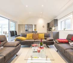 Im Nachtbereich verfügen Sie über 3 große, angenehme Schlafzimmer (jeweils mit Fernseher) und 2 modern ausgestattete Badezimmer. Wenn Sie mit Jugendlichen im Urlaub sind, werden sie begeistert sein!