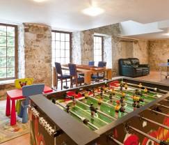 Auf diesem wunderschönen, 2 ha großen Gelände im Herzen der belgischen Ardennen werden Sie zweifellos einen unvergesslichen Gruppenurlaub verleben. Mit seinen auf zwei Geschosse verteilten 10 Schlafzimmern und 10 Badezimmern bietet dieses Ferienhaus einer Gruppe von 28 Personen komfortabel Platz. Neben den ausladenden und sorgfältig eingerichteten Zimmern können Sie sich auch an einem äußerst geschmackvoll gestalteten Wohnbereich mit gepflegter Dekoration und qualitativ hochwertigem Mobiliar erfreuen. Das Wohnzimmer mit Sitzecke und Esszimmer strahlt eine warme Atmosphäre aus, und in der großen, komplett ausgestatteten Küche werden Sie sich wie der Chefkoch in einem Sternerestaurant fühlen. Und schließlich wäre da noch ein Spielzimmer mit Tischtennisplatte und Kicker zu erwähnen, die bei den Jüngsten für großen Spaß sorgen werden. Sie werden sich noch lange an diesen Urlaub erinnern, denn in einem riesigen Garten finden sie ein wahres Spielparadies vor.