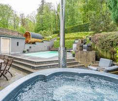 Luxuriöses Ferienhaus mit Außenpool, Sauna, Whirlpool und Hot Tub in perfekter Lage, die sowohl die Annehmlichkeiten der Stadt als auch unberührte Natur bietet