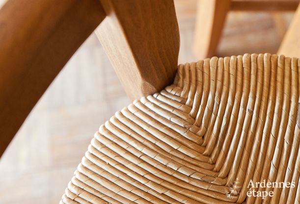 Mit 3 Schlafzimmern und 2 Badezimmern bietet das Ferienhaus optimalen Komfort für 6 Personen. Für die Kinder steht ein Etagenbett bereit, und junge Eltern werden sich über das Babybett freuen. Die Räume sind sehr gepflegt eingerichtet, und der authentische Charakter des Hauses wurde beibehalten, um eine besonders einladende Atmosphäre zu schaffen. Die großen Glastüren lassen viel Tageslicht ins Wohnzimmer, das mit seinen Natursteinmauern und freiliegenden Holzbalken besonders eindrucksvoll ist. Das Esszimmer ist ebenfalls sehr gemütlich und ideal für Mahlzeiten in geselliger Runde, während die umfassend ausgestattete Küche perfekt für die Zubereitung leckerer Rezepte ist. Im Sommer ist ein Grill-Abend eine willkommene Abwechslung, um die reizvolle Umgebung im Freien zu genießen. Die Kinder werden in dem 6000 m² großen, privaten Garten mit Rutsche, Schaukel und großer Spielwiese ihren Spaß haben.