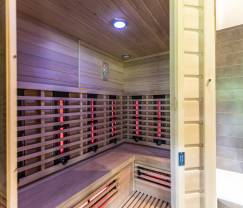 Zur Entspannung gibt es einen großzügigen Entspannungsraum, in dem man herrlich relaxen kann. Zudem sind sowohl eine Sauna als auch ein Whirlpool vorhanden, sodass man nach einem aktiven Tag vollkommen zur Ruhe kommen kann. Das Haus ist außerdem mit einem Holzofen ausgestattet, was zur gemütlichen und warmen Atmosphäre im Inneren beiträgt.