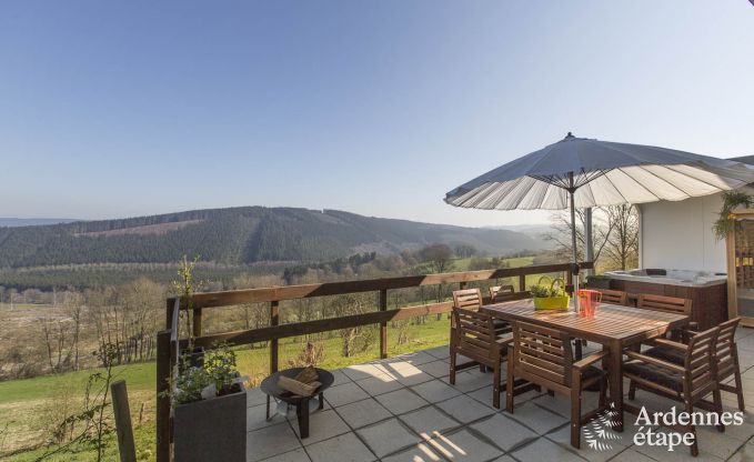 Propreté impeccable, vue magnifique, literie super confortable, grandes chambres doubles, deuxième frigo dans la cuisine très bonne idée. Jakuzzi super propre. Dommage pour le sauna qui était hors d'usage, on aurait préféré pouvoir rebooker après réparation. A sept personnes, nous n'avons pas profité du feu qui se trouve deux étages au dessus du living et ne dispose que de 4 fauteuils. Escaliers entre les trois niveaux très abruptes, il vaut mieux le savoir. Belles balades autour du gîte.