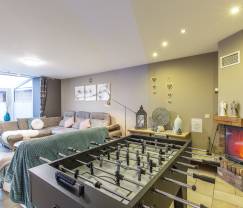 Das Ferienhaus ist ideal für zwei Familien: Sie teilen sich die behaglichen Wohnräume und genießen dennoch die nötige Privatsphäre. Freuen Sie sich auf eine tolle gemeinsame Zeit, auf Relaxen im Wellnessbereich, Badespaß im Pool und heiße Kickergefechte!