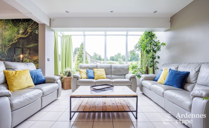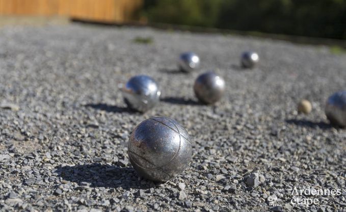 Eine kleine Ruheoase in den Ardennen für Familien bis 9 Personen auf der Suche nach einem erholsamen Urlaub auf dem Lande. Für Ihr Wohlbefinden wurde an alles gedacht: Beispielsweise verfügen Sie über einen schönen Pool, einen Wellnessbereich mit Sauna, Fitness-Geräte und einen gemütlichen Home-Cinema-Bereich. Praktisch sind die 3 privaten Badezimmer und ein 4. Badezimmer im Obergeschoss. Die 4 Schlafzimmer bieten erstklassigen Komfort und hochwertige Betten. Zu den Feinheiten, die den Unterschied ausmachen, gehört die sehr gut ausgestattete Küche, ideal für das Gelingen Ihrer beliebtesten Rezepte. In das Wohnzimmer gelangt viel Licht durch die großen Fenster, die auch einen herrlichen Ausblick auf die Umgebung bieten. Neben dem Pool verfügen die Kinder im Außenbereich über eine paradiesische Spielwiese mit Schaukel, Boulodrom und Volleyball-Netz und über einen Tischtennistisch in der Garage. Hier können Sie sich nach Herzenslust vergnügen und leckere Gerichte vom Grill genießen.