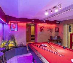 Dieses Ferienhaus ist ideal für einen Familienurlaub, denn es verfügt über Entspannungsräume und Spielmöglichkeiten für jedes Alter. Wellness-Fans werden begeistert sein, schließlich gibt es hier einen ganzjährig beheizten Indoorpool, eine Sauna und einen Whirlpool im Freien. Die jüngeren Gäste werden sich vor allem über den Hobbyraum mit Billardtisch und Kicker sowie den Garten mit Bouleplatz, Schaukel und Badminton-Platz freuen. In diesem bemerkenswerten Ferienhaus müssen Sie sich also keine Sekunde langweilen. Die Räumlichkeiten sind sehr funktional und gut eingerichtet. Die perfekt ausgestattete Küche ist zum großen Esszimmer hin offen, welches Ihnen ein sehr hübsches und geselliges Ambiente bietet. Nebenan befindet sich das Wohnzimmer mit bequemen Sofas, wo Sie garantiert schöne Abende mit der Familie oder Ihren Freunden verbringen werden. Für optimalen Komfort stehen Ihnen 4 Schlafzimmer und 4 Bäder zur Verfügung.