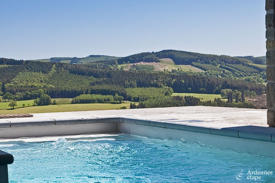 Dieses Ferienhaus in einem kleinen Dörfchen besticht mit weitläufigen Räumen, hochwertigen Baustoffen und raffiniert und geschmackvoll eingerichteten Zimmern. Die Ferienvilla mit acht Zimmern auf zwei Etagen hat Platz für bis zu 18 Personen. Sie befindet sich Stoumont und bietet einen herrlichen Panoramablick auf die umgebende Landschaft. Hier können Sie in Ihrem Urlaub in den belgischen Ardennen einen Wellnessbereich mit Sauna und Sonnenbank nutzen, der im Obergeschoss der Villa eingerichtet wurde. Sollte ein Paar sich etwas absondern möchten ohne auf die gemeinsamen Momente mit der Gruppe zu verzichten, steht gegenüber vom Haupthaus ein Appartment mit Wohnzimmer, Badezimmer und Fernseher zur Verfügung, dass die gewünschte Privatsphäre garantiert. Grill, Outdoor-Swimmingpool und ein 8000 m² großer, offener Garten mit Schaukel und Tischtennisplatte erwarten Sie an sonnigen Tagen.