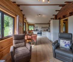 Das Chalet ist vollständig aus Holz gebaut, sowohl innen als auch außen, was für eine warme und gemütliche Atmosphäre sorgt. Alle Wohnräume, Schlafzimmer und das Badezimmer befinden sich auf derselben Ebene, mit direktem Zugang zur Terrasse und zum Garten. Im Erdgeschoss findest du eine Garage mit einem Tischtennistisch und einem Spielzimmer für die Kinder. Hier kannst du auch deine Fahrräder sicher in der gesicherten Fahrradunterstellmöglichkeit abstellen.