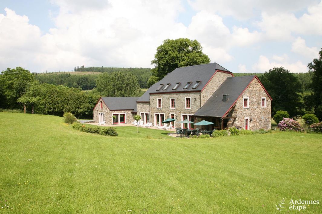 Luxusanwesen in typischer Bauweise der Ardennen-Region, umgeben von grünen Naturlandschaften. Mit 8 Schlafzimmern, einem Pool und allem Komfort für Ihre Familienzusammenkünfte oder Business-Seminare.