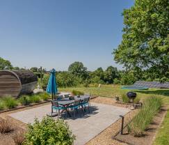 Auf Wunsch können Sie die Infrarotsauna nutzen, die im Außenbereich des Ferienhauses auf Sie wartet. Sie kann auf Anfrage und gegen Aufpreis für je zwei Stunden vor Ort beim Vermieter gebucht werden.