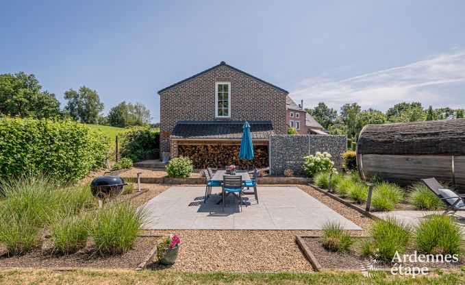 Zeer ruime en mooi ingerichte vakantiewoning, een mooie tuin met buitensauna. Wandelwegen en ravel (ligne 38) liggen vlakbij. In tegenstelling tot vele gerenoveerde vakantiewoningen die vaak weinig vensters hebben en daardoor een sombere indruk geven, werd bij deze gite veel aandacht besteed aan lichtinval via dakvensters, en een groot raam met een prachtig uitzicht op de omgeving. De vakantiewoning ligt naast de woning van de eigenaars, maar toch heb je voldoende privacy.