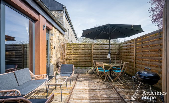 Willkommen in diesem charmanten Ferienhaus in Tinlot, einem typischen Dorf in der Condroz. Dieses Haus, das aus dem frühen 1700 stammt und im Jahr 2021 vollständig renoviert wurde, ist der perfekte Ort für Paare, Familien mit Kindern und Sportbegeisterte. Mit Platz für 4 Personen, bietet das Haus alles, was Sie für einen entspannten Urlaub benötigen.