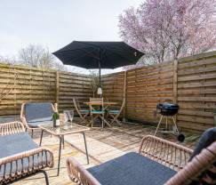 Und dann haben wir noch nicht einmal über den Außenbereich gesprochen. Die südlich ausgerichtete Terrasse ist der ideale Ort zum Entspannen. Mit bequemen Gartenmöbeln und einem Holzboden ist es der perfekte Ort, um die Sonne und die Ruhe der Umgebung zu genießen. Und die Grill-Liebhaber werden sich hier wohlfühlen.