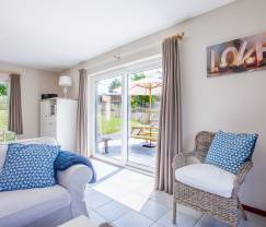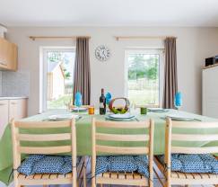 Sie werden sofort begeistert sein von der paradiesischen Umgebung dieses prachtvollen Chalets. Der sehr große Garten ist umrahmt von grünender Natur und lädt ein zu Ruhe und Entspannung. Sie verfügen außerdem über ein Boulodrome und eine Terrasse mit Grill und Gartenmöbeln. Die Innenbereiche sind überaus gemütlich, funktionsorientiert eingerichtet und reizvoll dekoriert. Dadurch entsteht eine einladende Atmosphäre mit Wohnräumen, in denen man sich gern gemeinsam aufhält. Der Hauptwohnbereich aus Wohnzimmer und Kochnische/Esszimmer lässt durch seine großen Fenster und Glastüren viel Tageslicht hinein. Machen Sie es sich auf den bequemen Sofas gemütlich, und genießen Sie Ihre Mahlzeiten mit der Familie in der geräumigen Essecke. In der Küche finden Sie die nötige Ausstattung für die Zubereitung Ihrer Lieblingsgerichte. Die 2 Schlafzimmer sind mit jeweils 3 Einzelbetten ausgestattet, die Sie ganz nach Belieben aufteilen können. Für optimalen Komfort verfügen Sie außerdem über 2 schöne Badezimmer mit moderner Ausstattung.