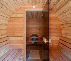 Ein weiterer großer Vorteil: das einzigartige Innen-Außen-Schwimmbad, ideal zum Schwimmen unabhängig vom Wetter. Nach einem erfrischenden Sprung kann man sich vollständig in der Sauna oder auf den komfortablen Gartenmöbeln erholen.