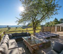 Dieses 4,5-Sterne-Ferienhaus mit Spitzenausstattung befindet sich in ausgesprochen ruhiger Lage in einem Dorf. Die zur Vermietung angebotene Unterkunft ist auf 2 Stockwerke verteilt. Im Erdgeschoss befinden sich ein weitläufiger Wohnbereich sowie ein herrlicher Swimmingpool und ein Wellnessbereich mit einer Sauna für bis zu 5 Personen. Im Obergeschoss erwartet Sie der Schlafbereich mit 5 Zimmern, jedes mit eigenem Badezimmer. Die Inneneinrichtung wurde mit viel Liebe gestaltet und schafft ein helles, freundliches Ambiente. Draußen erwarten Sie eine große, möblierte Terrasse, eine Boulebahn und Schaukeln für die Kinder. Das alles verspricht angenehme und gesellige Abende. Parken ist kein Problem, da Ihnen ein privater Parkplatz für 6 Fahrzeuge zur Verfügung steht.
