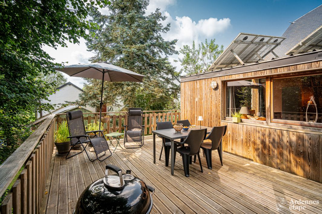 Magnifique maison dans un endroit très calme. La terrasse est super et on a l'impression d'être dans les arbres. Beaucoup de petits oiseaux passent devant la fenêtre en journée. Véronique était très acceuillante et flexible, même si on était arrivé plus tôt que prévu. Enormément de chouettes balades dans les environs, même partant directement de la maison. Il faut savoir que la maison est contre une autre maison, mais on a l'impression d'être tout seuls donc aucun problème sur ce point.
